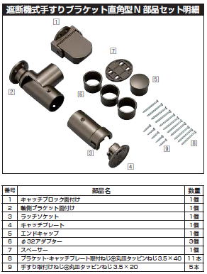 | ≪遮断機式手すりブラケット 直角型N≫ ![]() ![]() ■ 手すり棒のご購入は下記よりお買い求めいただけます ■ ※手すり棒は、他社製品でも35ミリ径もしくは32ミリ径ですとご使用いただけます。